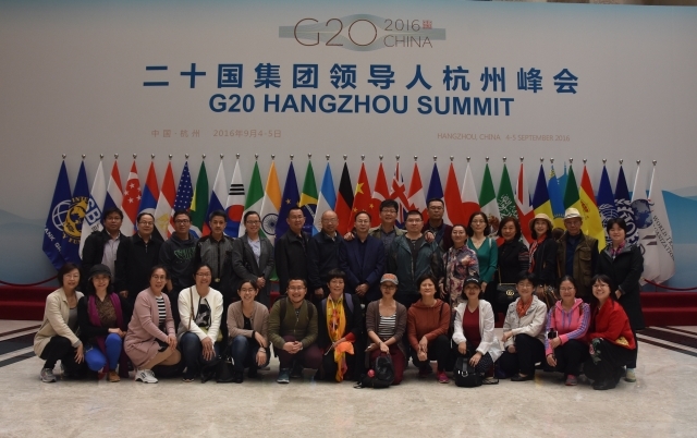 之后,广大教师依次参观了G20峰会迎宾区、主会场、午宴区和空中花园等峰会场馆。整个会场建筑集庄重、现代、宏伟、绿色于一体,大家对此赞叹不已。参观过程中,大家倍感荣幸,言谈间充满了对祖国的挚爱之情和民族自豪感,纷纷表示这是很有意义的考察学习调研之旅。